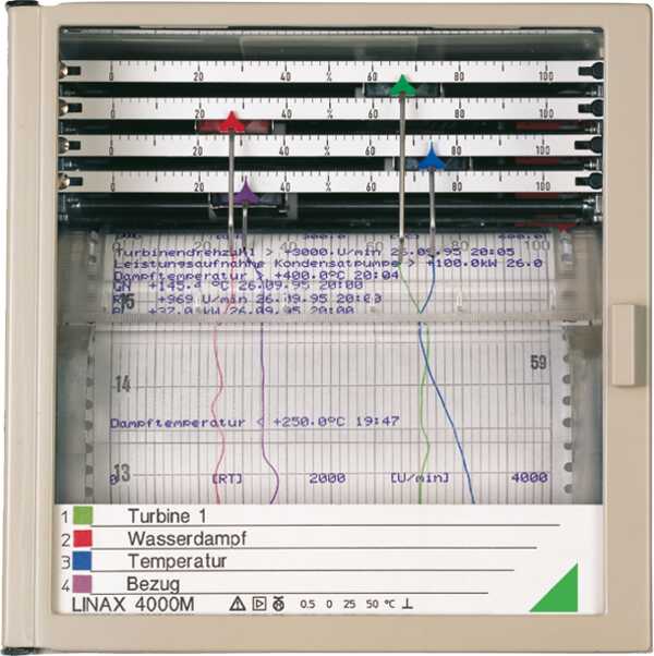 1...4-Kanal Linienschreiber, 144 x 144 mm, mit Universalkarte (DC- und Prozesseingänge) und Grundparameter-Voreinstellung nach Datenblatt, Messbereich 0 … 20 mA