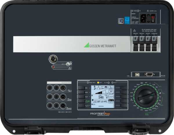 Test instrument for testing the effectiveness of protective measures in electrical installations per IEC 60364-6 and DIN EN 50110-1, machines and systems per DIN EN 60204-1 and DIN EN 61439-1, PV systems per DIN EN 62446 and electric charging stations per IEC 61851-1